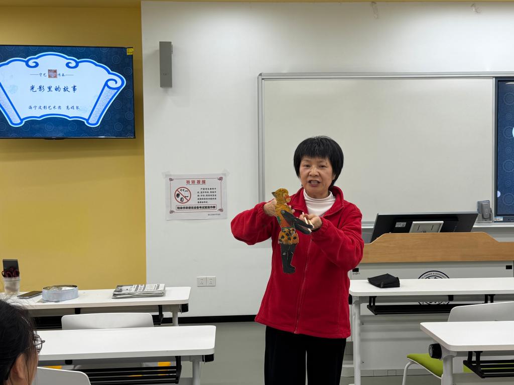 为了让学生近距离接触传统艺术,2026年4月22日下午,我院特邀海宁皮影艺术团高娟琴老师,在3教203教室开展了一场主题为“光影里的故事“的文化传承与课程思政实践讲座。本次讲座由陈希敏老师主持,修读《创动皮影》课程的学生共同参与,课程将皮影修复、经典故事演唱、传统戏曲讲解与木偶操作教学结合,为学生们带来了一场沉浸式的非遗体验。